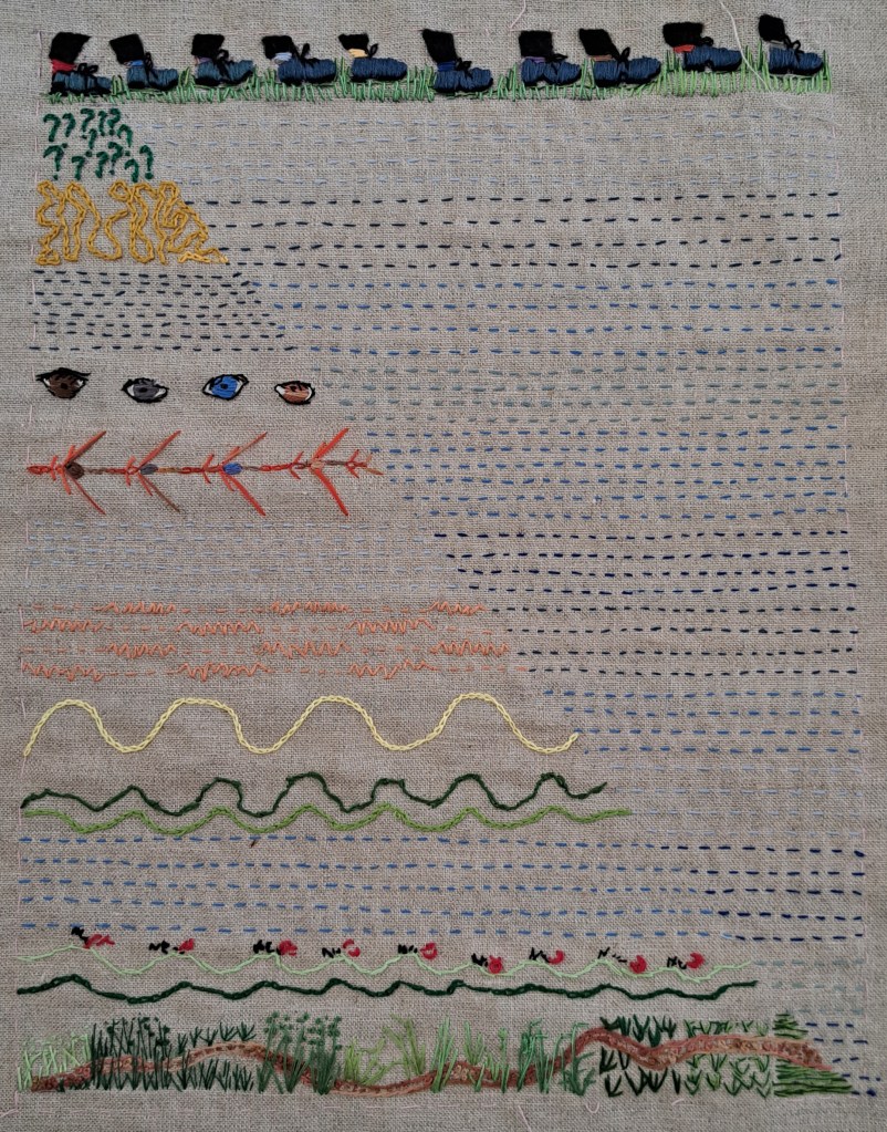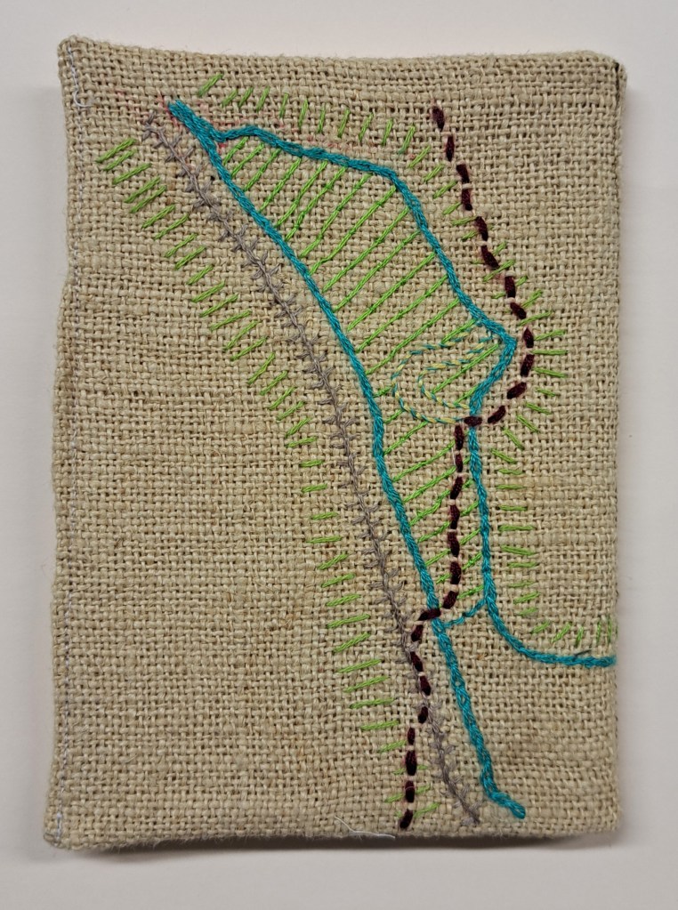 Meg had walked many times on her common and represented each of these on the piece of linen which I had previously given out to those interested in possibly contributing to a shared artwork for next year’s Walking the Commons exhibition here at HARC.